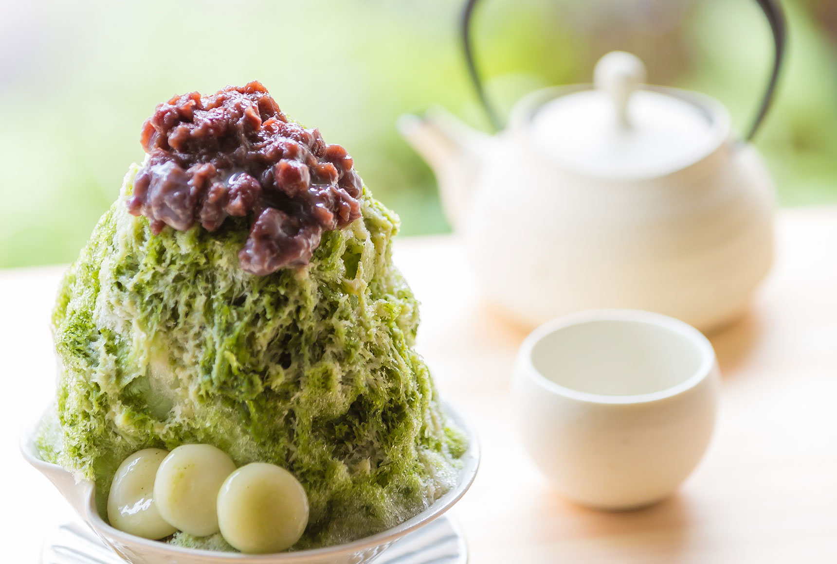 10月中は小さめかき氷セット(お茶&あずきを添えた桑玉付き)で